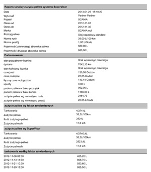 Pojawia się pełne rozlicznie zużycia paliwa w zdefiniowanym zakresie czasu.